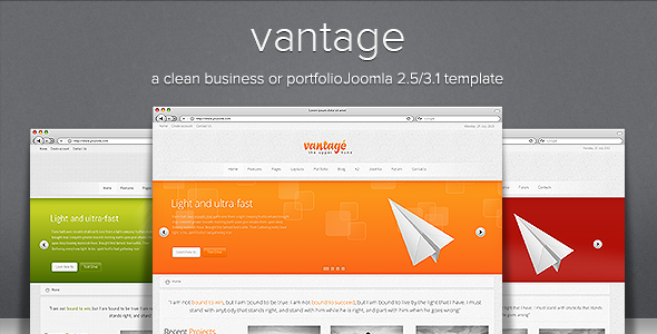 Vantage Template is a clean business or portfolio Joomla 2.5/3.1 template built with a clean and crisp, pixel by pixel concept. Vantage comes packed with various extensions and an interactive admin option panel.